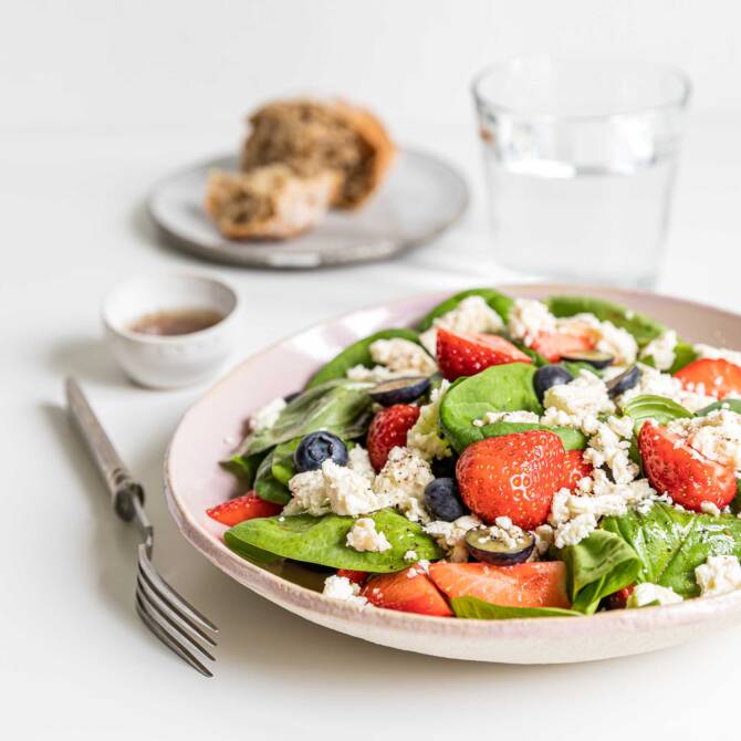 This healthy salad adds variety to your diet with spinach, strawberries and feta. The ideal side dish!
