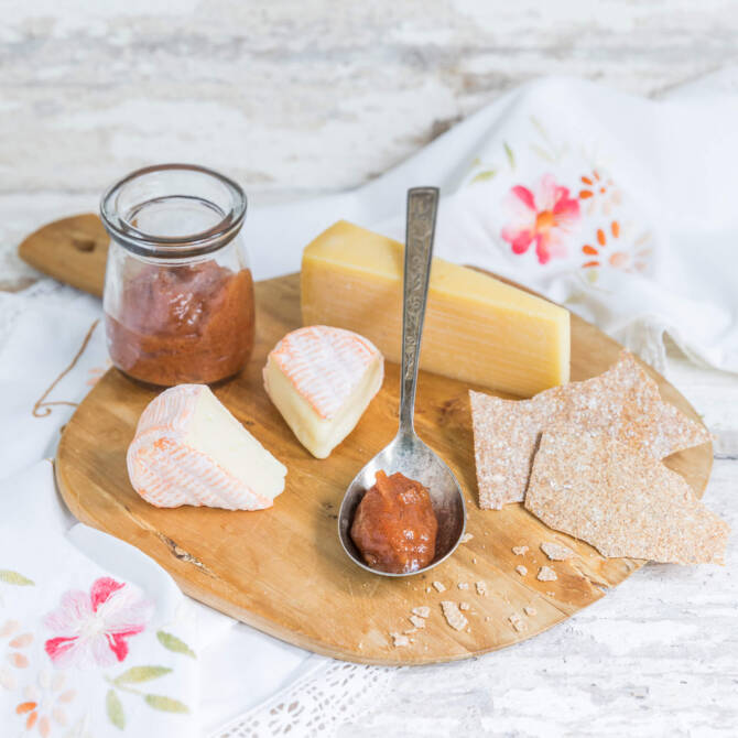 Soak the gelatine sheets in cold water for 5 minutes. Squeeze any leftover water from the gelatine sheets and add the gelatine into the tomato jam. Puree the tomatoes with a hand blender and leave the mixture to cool down. Serve with cheese or meat. Store in the refrigerator. Keeps for a few weeks.