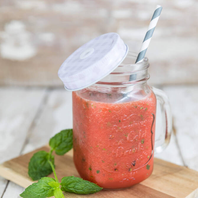 Cut the watermelon into cubes. Squeeze the juice from the lemon. Put the watermelon, ice, lemon juice and SteviaSweet Crystal into a blender. Mix until smooth. Add the mint leaves and mix quickly. Serve immediately.